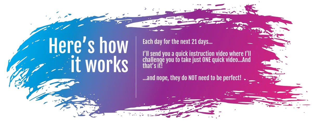 I'll send you a quick instruction video where's I'll challenge you to take JUST one quick video. . And that's it!